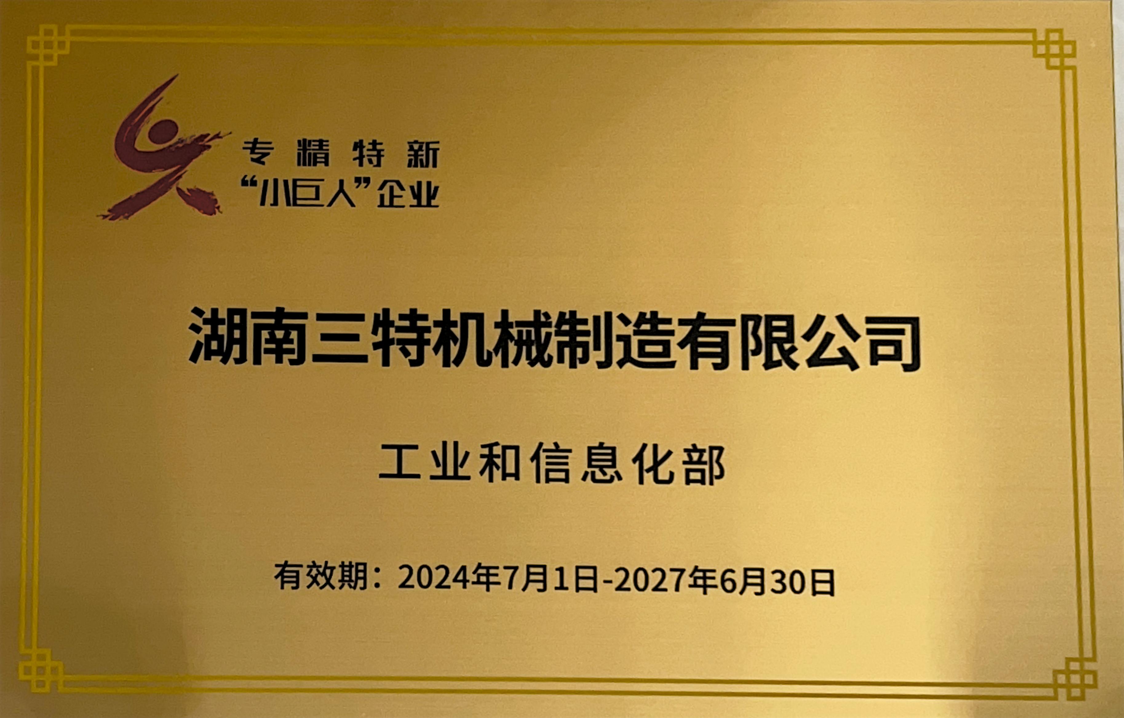 湖南三特晉級國家級專精特新“小巨人”企業(yè)